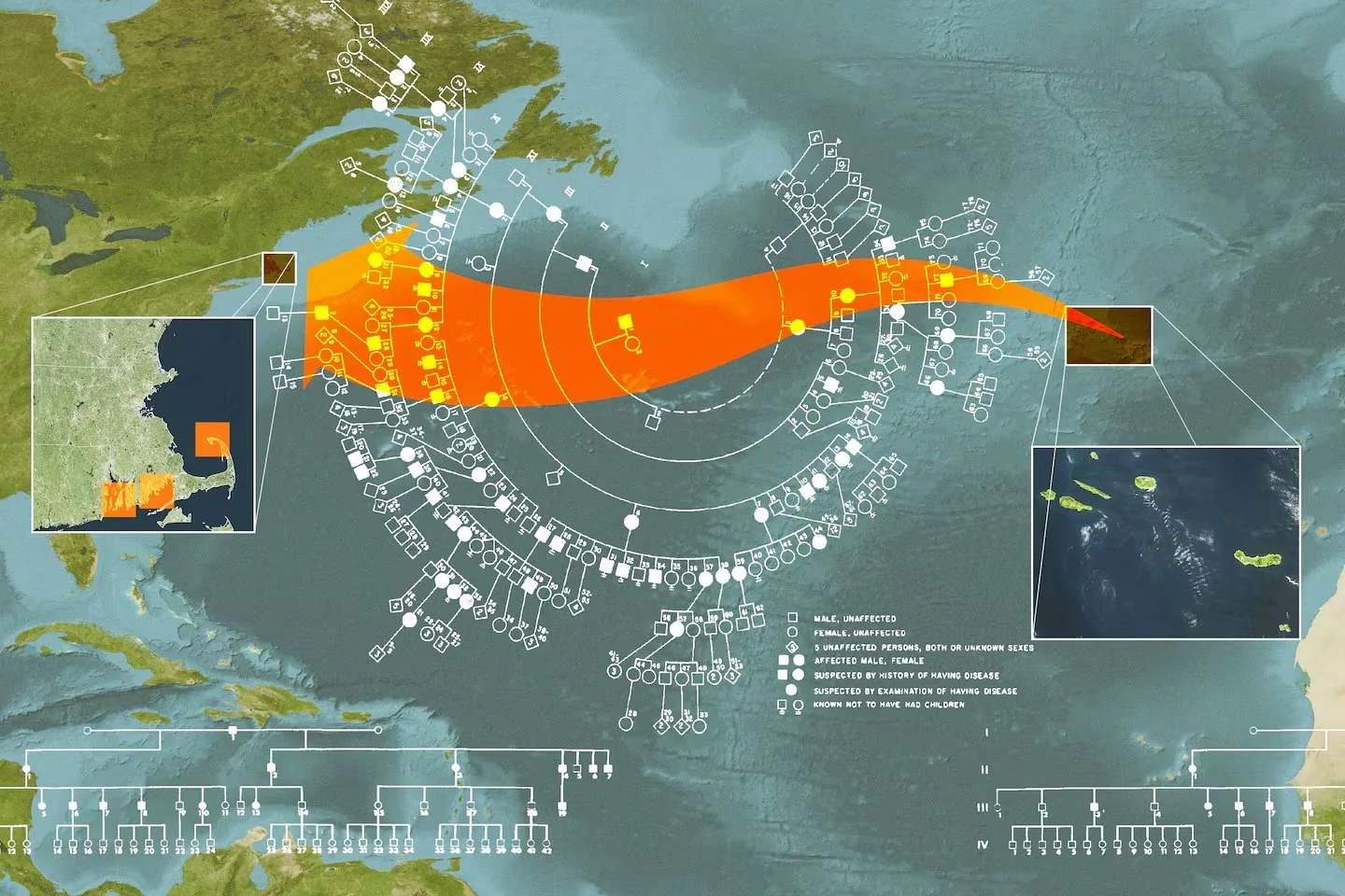 “In the years that followed, the same disease would be found in families from China and India and Côte d’Ivoire; in Warnumamalya families on Groote Eylandt, Australia; and Japanese families on Honshu Island. Machado-Joseph disease, researchers would realize, exists not just in the Portuguese diaspora — the Azores, Brazil, Angola, Cape Verde, those places touched by colonization — but also in remote places protected from Portuguese exploration, landlocked places bounded by high mountains and inhospitable deserts. Researchers ultimately traced its origins to Bronze Age Asia, where it drifted westward along the Silk Road before spreading again to the shores of Massachusetts, hidden in the blood of Portuguese explorers.”
